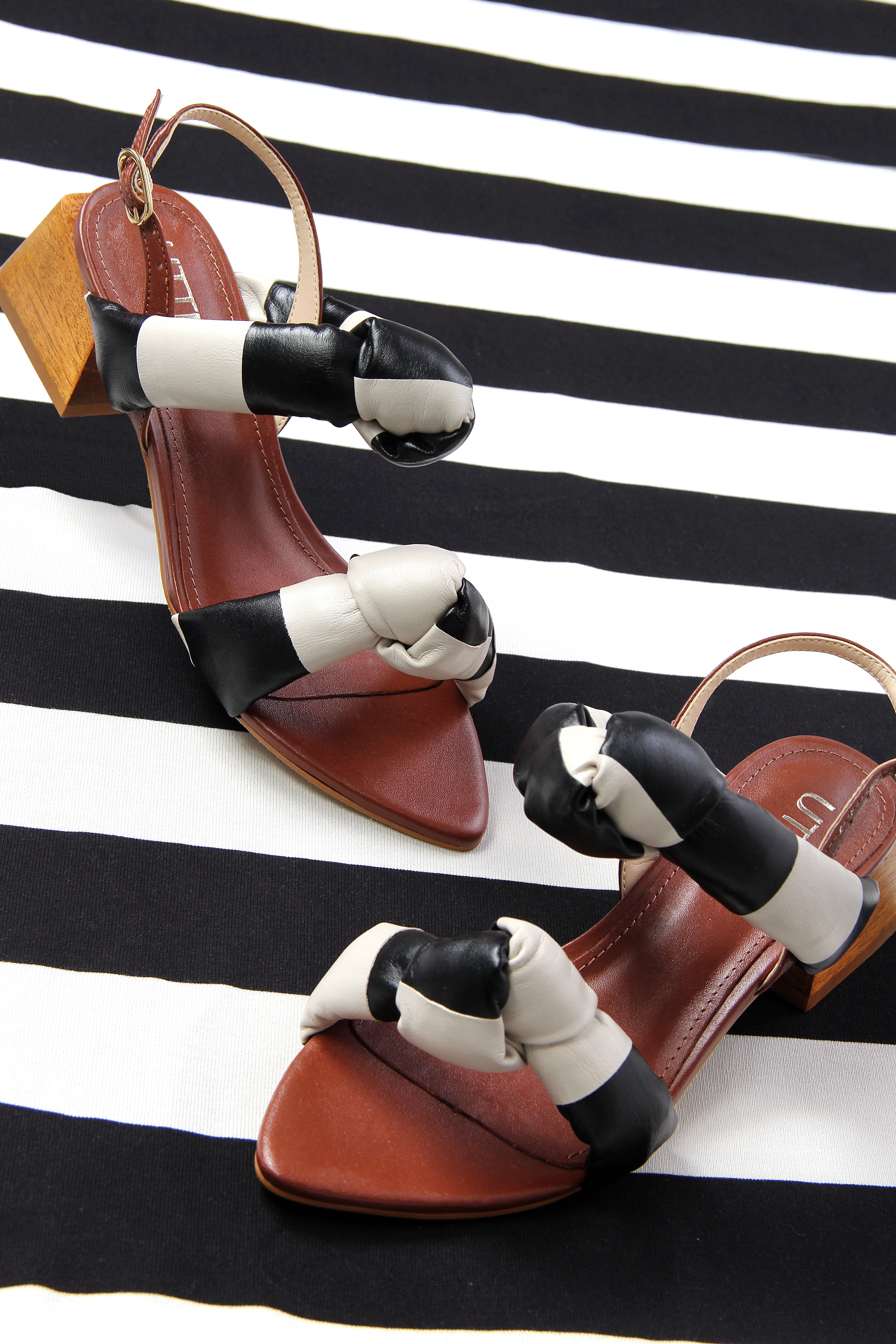 Inspirada no estilo modern chic europeu, esta sandália traz tiras acolchoadas torcidas em preto e off white, criando um visual gráfico e sofisticado — uma das tendências mais fortes da temporada. O contraste das cores neutras adiciona elegância atemporal e permite infinitas combinações: do jeans ao vestido de festa.