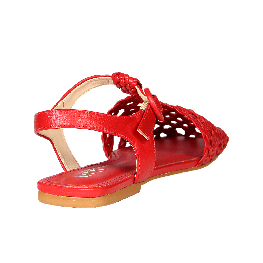 A expressão perfeita entre arte, conforto e moda. Esta flat tramada combina a leveza do feito à mão com a ousadia da cor vermelha, criando um calçado que transmite autenticidade e estilo marcante. Inspirada no espírito mediterrâneo e nas tendências artesanais, é uma peça que transforma qualquer look.