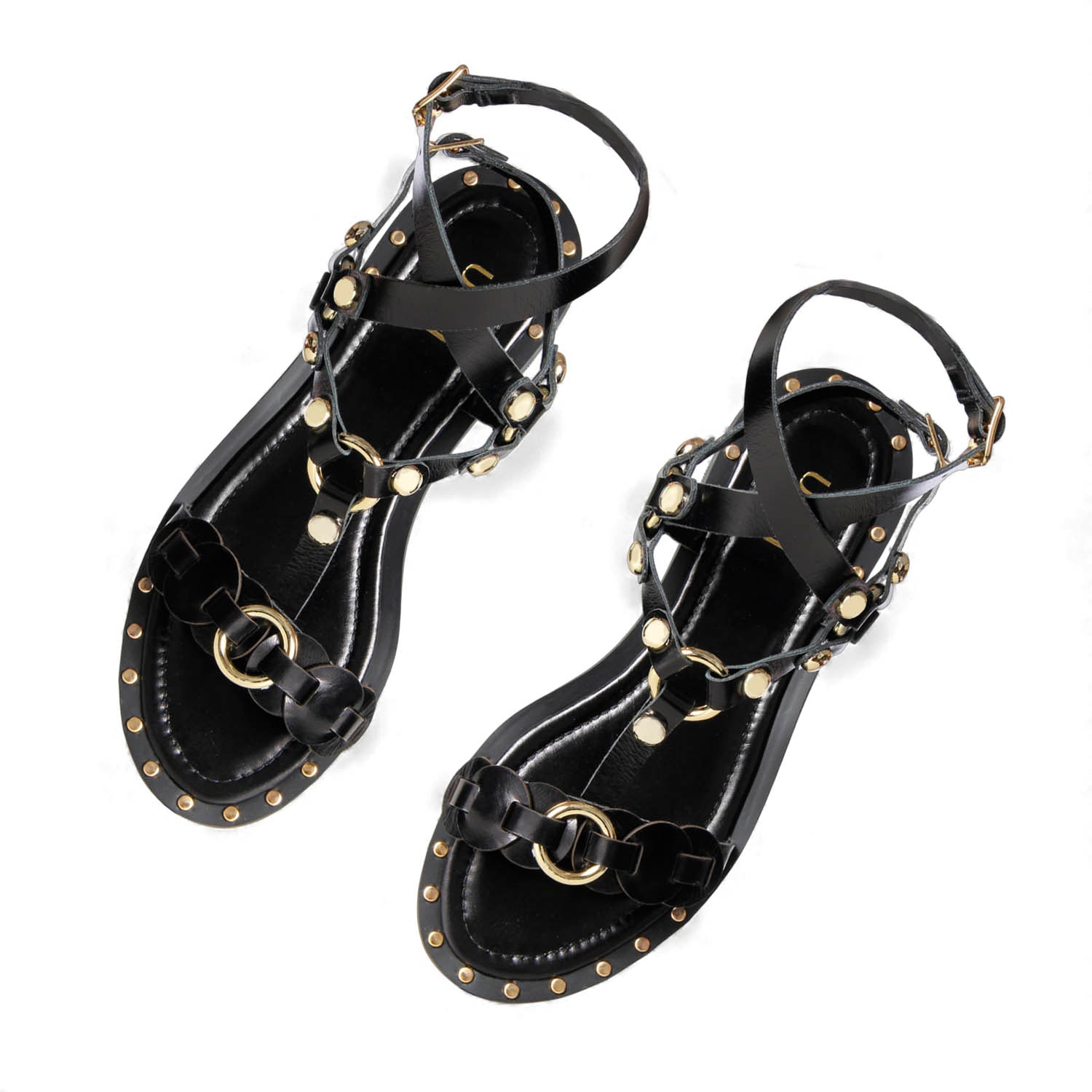 Sandália Alba – Couro Preto com Metais Light Gold