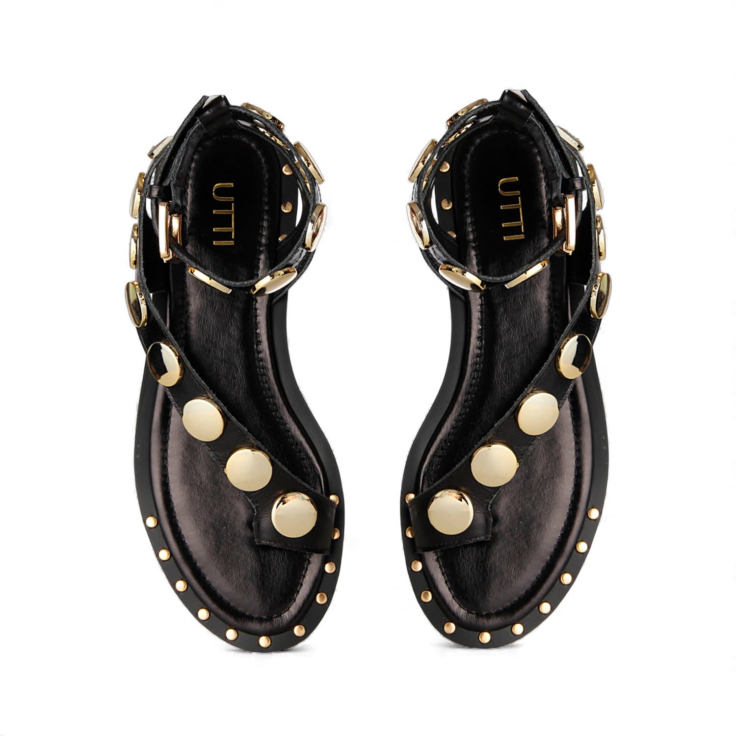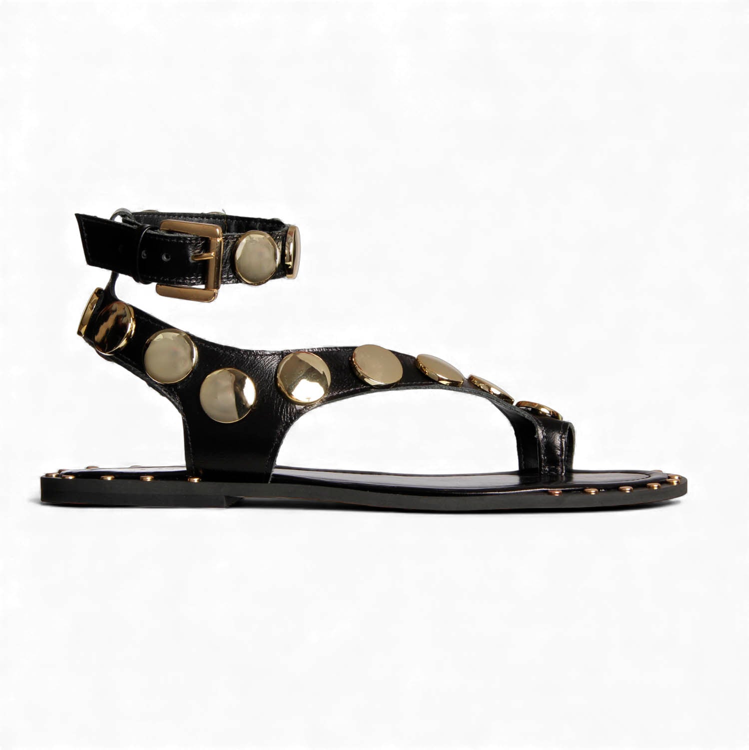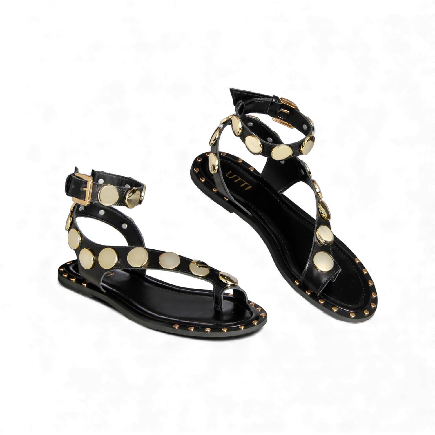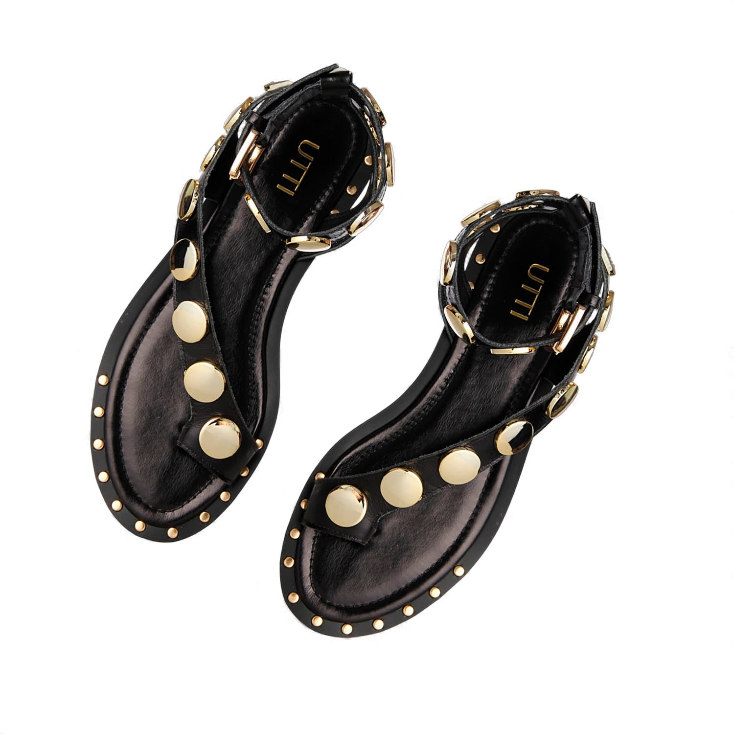 Sandália Gaia – Couro Preto com Metais Light Gold