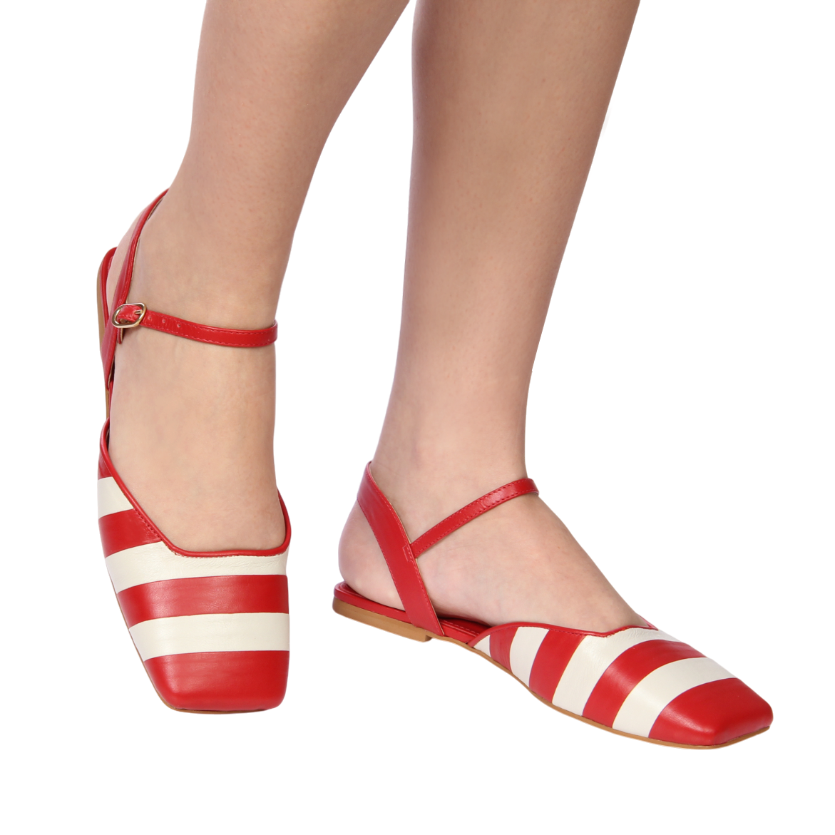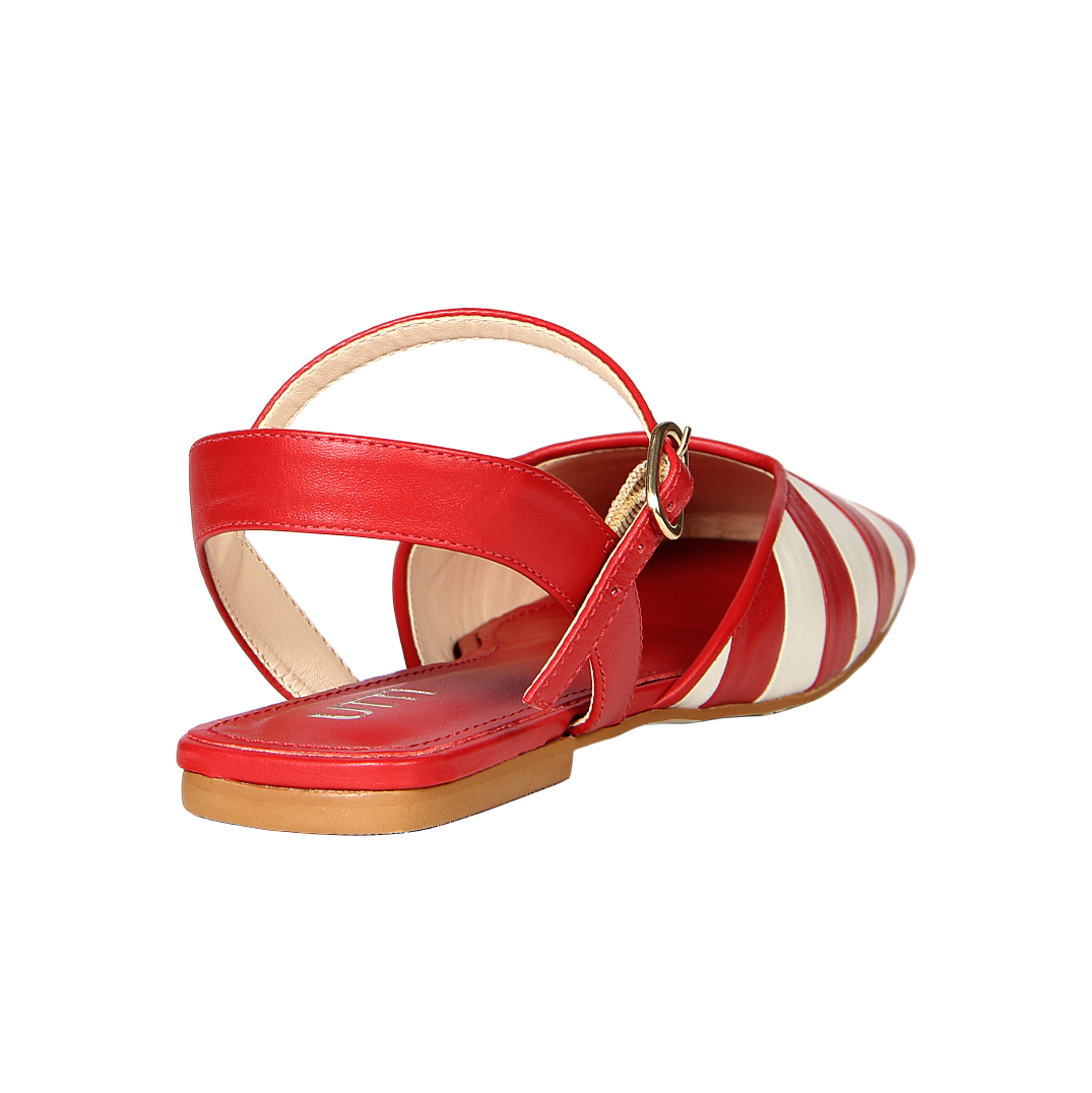 Listras em vermelho e off white são aposta certeira da temporada — elegantes, divertidas e atemporais. Essa flat é a escolha perfeita para criar produções com personalidade, seja para passeios, brunch ou viagens de verão.