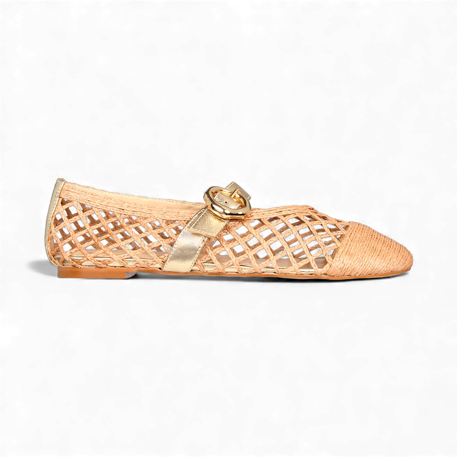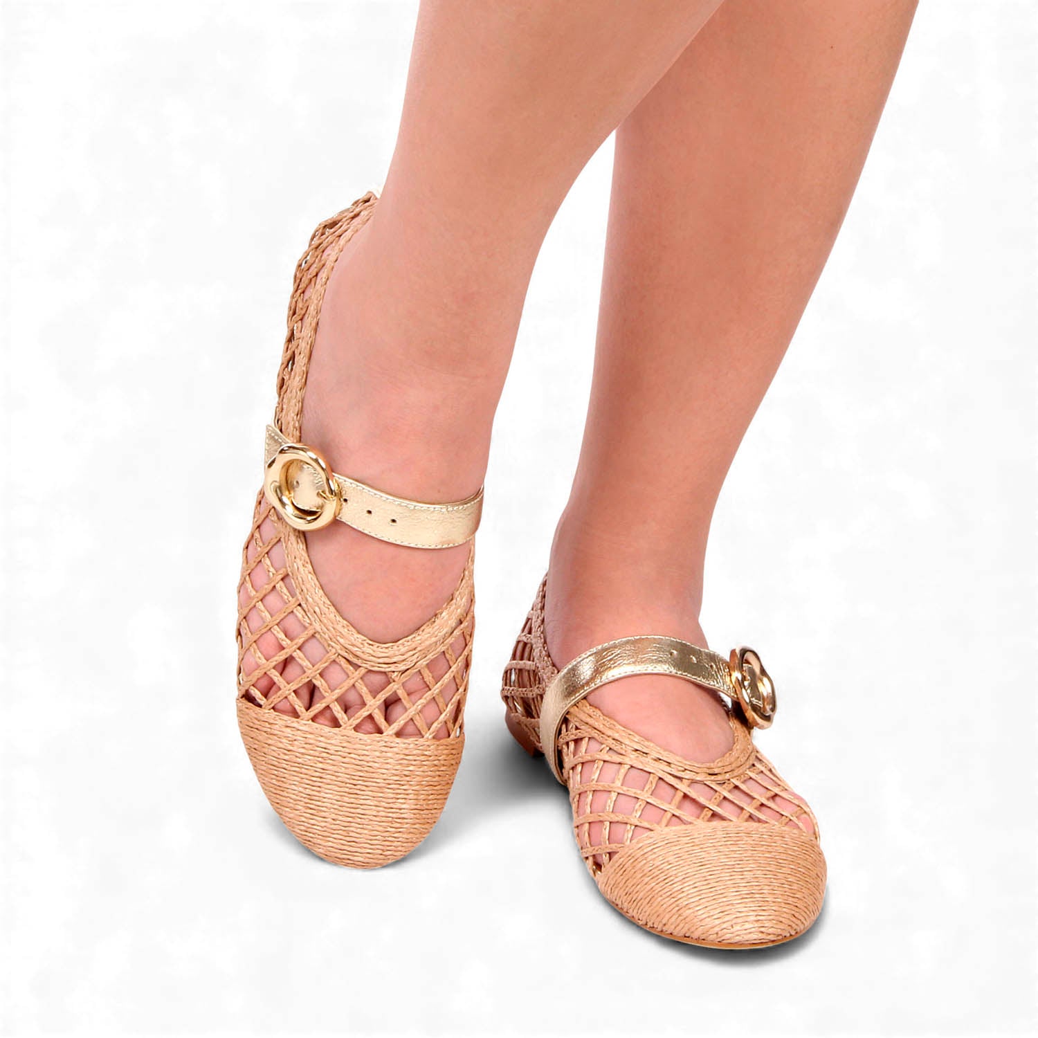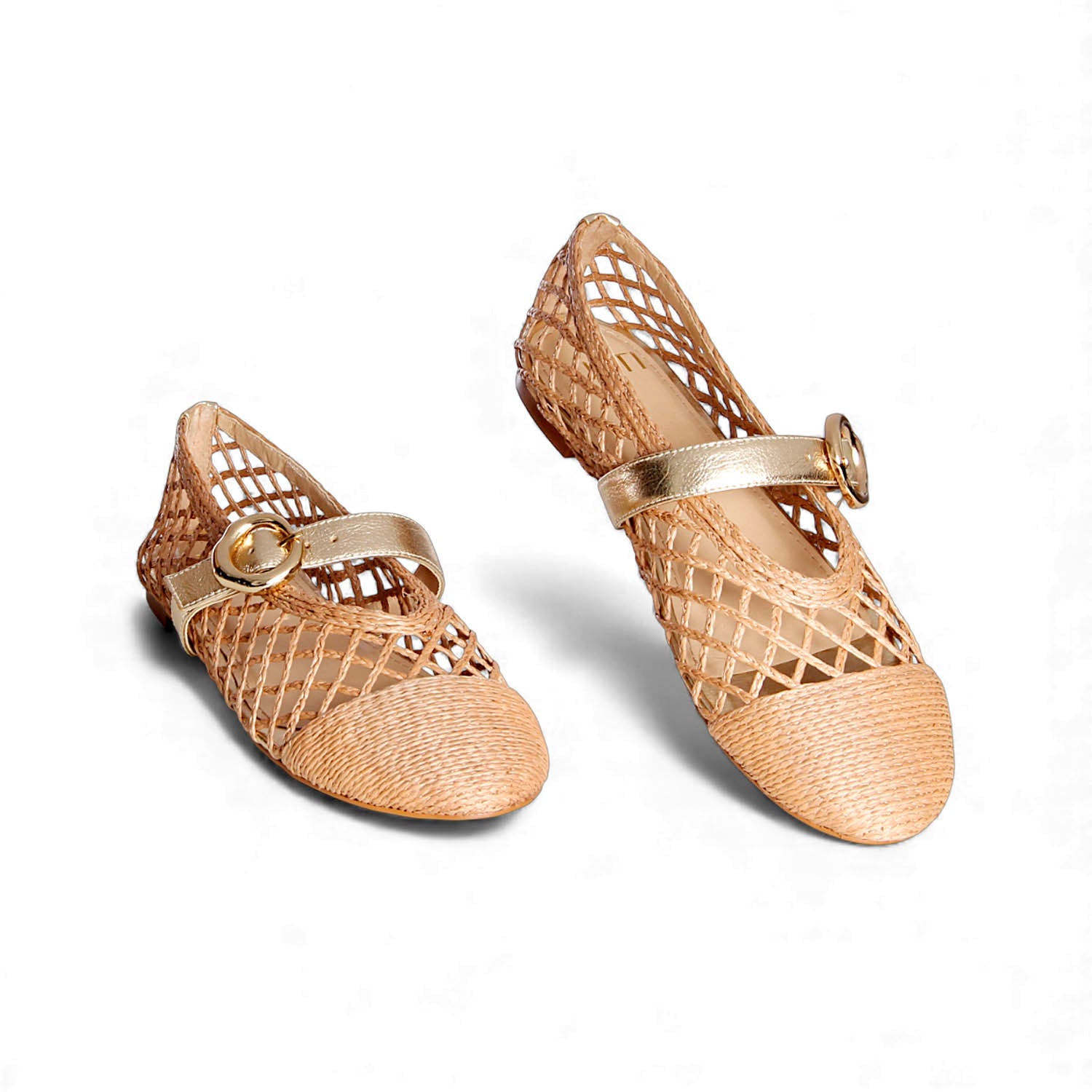 MAIA – Sapatilha Trançada Natural com Tira Dourada